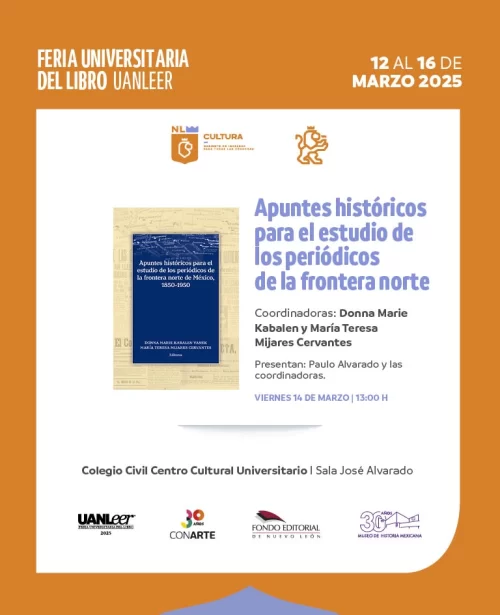 Donna Marie Kabalen Vanek y María Teresa Mijares Cervantes, coordinadoras de Apuntes históricos: estudio de los periódicos de la frontera norte de México 1850-1950, presentaron este análisis de la prensa de siete estados: Baja California, Baja California Sur, Sonora, Chihuahua, Coahuila, Nuevo León y Tamaulipas.