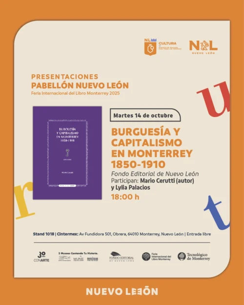 El martes 14 de octubre, Lydia Palacios acompañó a Mario Cerutti en la presentación de la segunda edición del que es ya un clásico, Burguesía y capitalismo en Monterrey, 1850-1910. Esta es una publicación que se ha convertido en referente de la historia económica del estado.