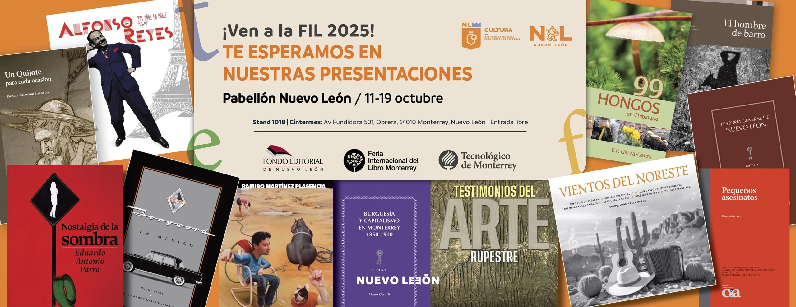 Del 11 al 19 de octubre el Fondo Editorial de Nuevo León estuvo presente en la Feria Internacional del Libro Monterrey 2025. Además de la venta de libros, el Pabellón Nuevo León fue escenario para la presentación de nuestros últimos títulos.